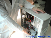 7. At each side of the hard drive you will have either 2 or 4 screws holding it in place, with a Philips, or flat head screw driver, unscrew the retaining screws. The drive should then slip out backwards from the bracket. In some computers the drive comes out of the front (please refer to user manual).